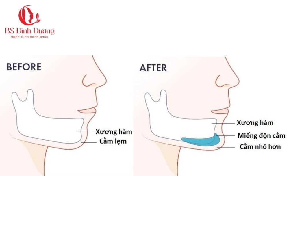 Bác sĩ sẽ rạch một đường nhỏ bên trong khoang miệng, tạo khoang để đặt sụn surgiform, sau đó cố định chắc chắn vào xương cằm.