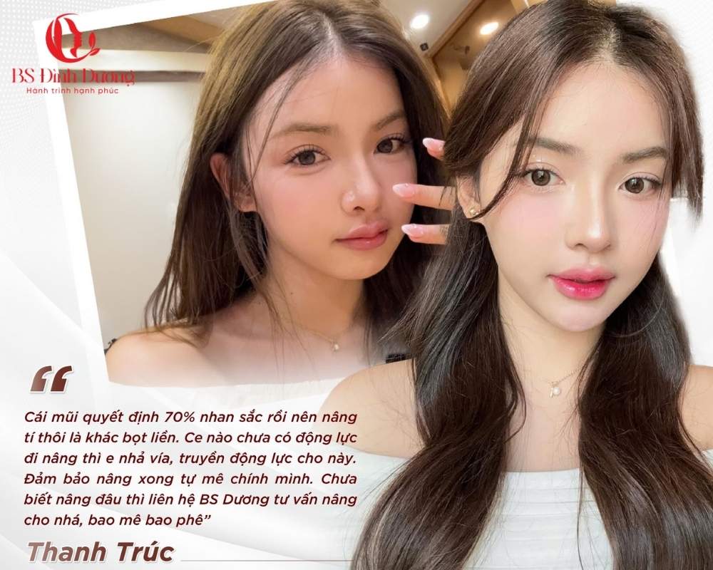 Chị Linh (30 tuổi, Hà Nội) chia sẻ: “Tôi nâng mũi tại TMV Đình Dương đã 5 năm, dáng mũi vẫn đẹp như ban đầu, không cần chỉnh sửa.”